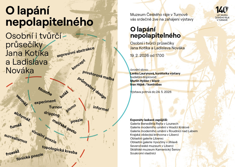 Jan Kotík (1916-2002) a Ladislav Novák (1925-1999) patří v tomto ohledu bezpochyby k těm nejslavnějším rodákům. Ačkoli v Turnově žili jen krátce v útlém dětství, zanechalo v nich městečko v srdci Českého ráje s podmanivou okolní krajinou skalních měst, hradů a zámků nesmazatelnou stopu. Intenzivní vztah k jejich rodišti, jejich vzájemné kontakty a aspekty, ve kterých se jejich tvůrčí přístupy protínaly, si klade za cíl nastínit výstava uspořádaná v roce, kdy by tito mezinárodně uznávaní avantgardní umělci, které pojily i nepřímé příbuzenské vazby, oslavili 101 a 110 let.