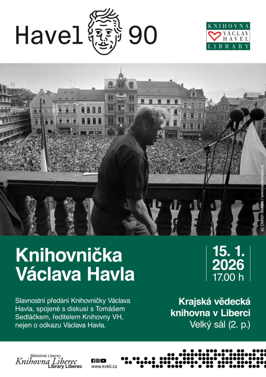 Slavnostní předání Knihovničky Václava Havla, spojené s diskusí s Tomášem Sedláčkem, ředitelem Knihovny VH, nejen o odkazu Václava Havla v roce, kdy by oslavil 90. narozeniny.